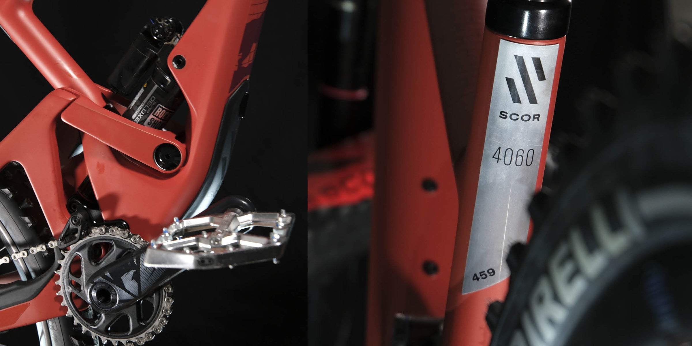 Frame: SCOR 4060 Full Carbon Frame | Lower-Link Driven Instant Center Linkage | 140 / 160mm Rear Wheel Travel | Fully Guided Internal Cable Routing | Stash Box | Boost 148 | SRAM UDH | Lower ISCG 05 Mount / Chainguide
